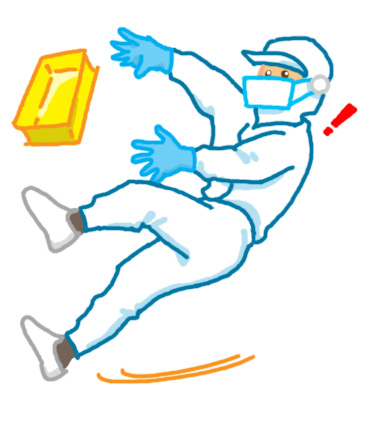 食品工場では、製造や加工中に食材のくずやゴミが発生します。生ごみや包材のごみなどが通路に落ちれば、足元が不安定になり、滑りやすさが増します。