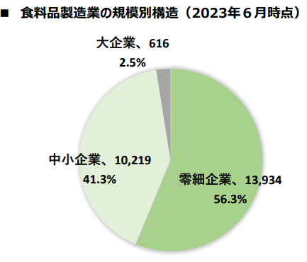 一方で、食料品製造業の多くが零細(従業員数19人以下)・中小企業(従業員数20以上、299人以下)であり、人材不足に悩んでいます。