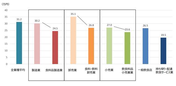 農林水産省のデータによると、食品産業の賃金は全業種平均よりも低い傾向にあります。
