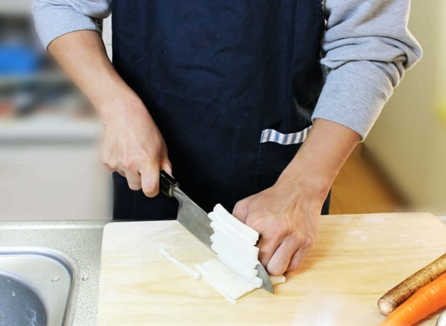 切れる包丁であれば、包丁の重みだけでスッと切れるため、無理な力によってケガをする心配は低減します。